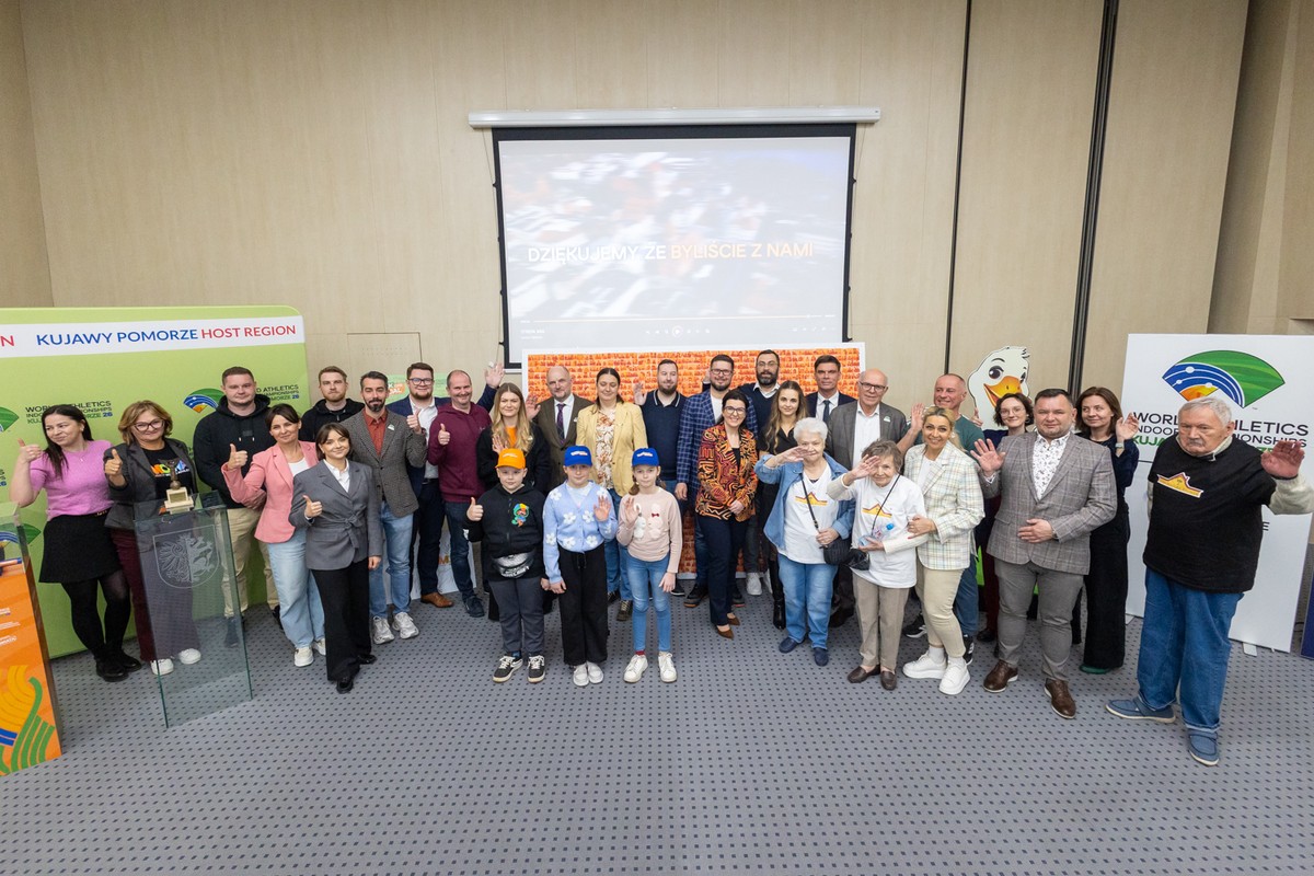 World Athletics ogłosiło Halowe Mistrzostwa Świata Kujawy Pomorze 26 (HMŚ) najlepszymi halowymi mistrzostwami świata w historii! W dzisiejszej (27 marca) konferencji podsumowującej najważniejszą lekkoatletyczną imprezę globu uczestniczyli marszałek Piotr Całbecki, dyrektor HMŚ Krzysztof Wolsztyński, pełnomocnik marszałka ds. organizacji HMŚ Beata Sawińska, przedstawiciele firmy One Sport, realizatorzy akcji 50 sztafet Kujaw i Pomorza i strefy kibica oraz członkowie naszych sztafet z Trzebcza Szlacheckiego (powiat chełmiński) i Lubrańca (powiat włocławski).  HMŚ Kujawy Pomorze: wielkie emocje, doskonałe wyniki, promocja regionu