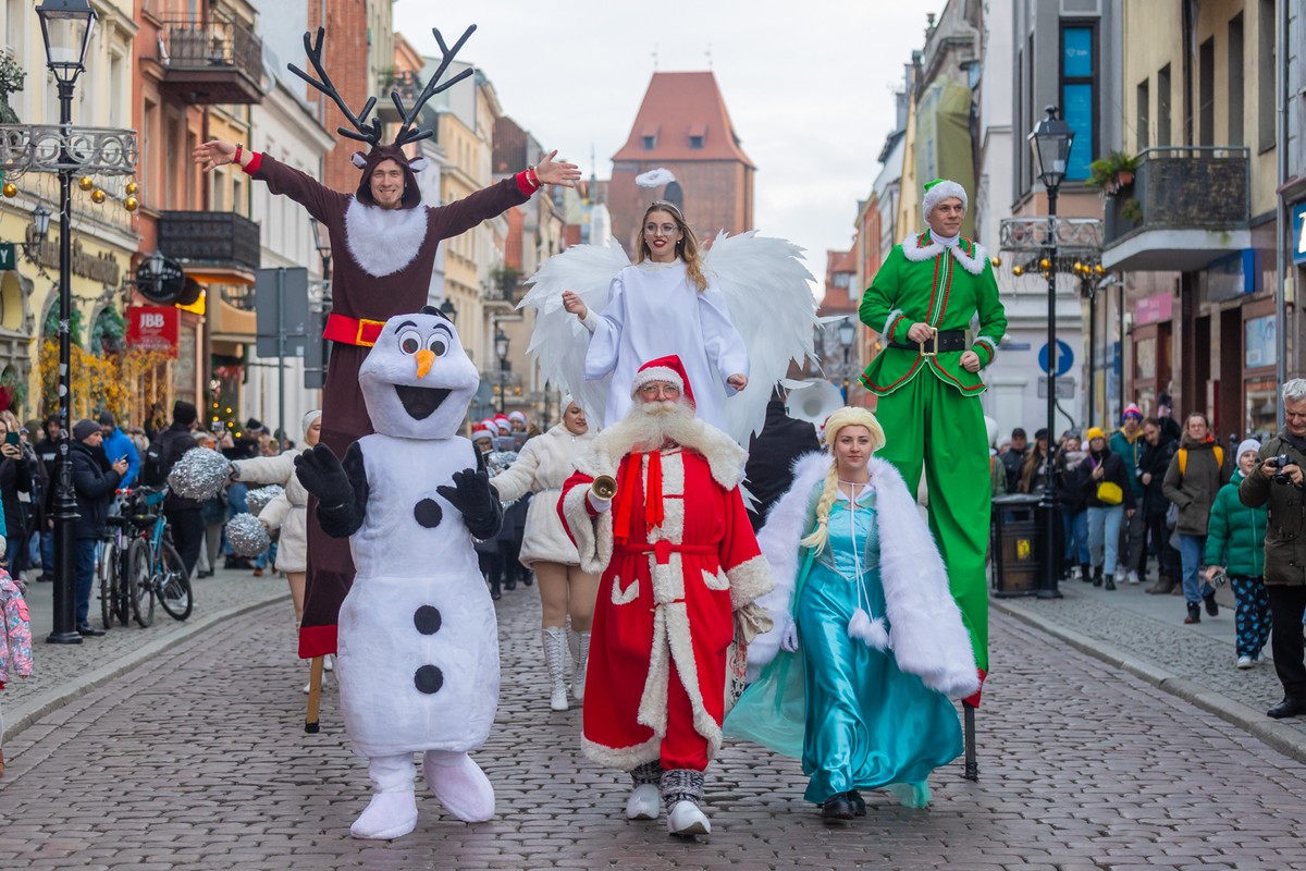 Punktualnie o 15 spod pomnika Mikołaja Kopernika w Rynku Staromiejskim wyruszyła świąteczna parada i w asyście orkiestry dętej ze Świecia ulicami starówki przeszła na plac Teatralny. Przed Urzędem Marszałkowskim kolędy wykonali: