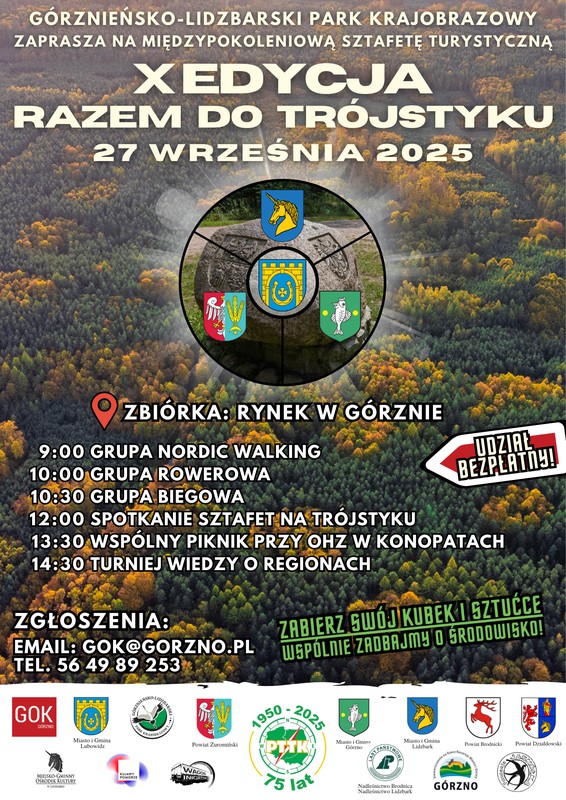 10 lat „Razem do trójstyku”! Górznieńsko-Lidzbarski Park Krajobrazowy serdecznie zaprasza miłośników leśnych wędrówek do udziału w jubileuszowej 10. edycji Międzypokoleniowej Sztafety Turystycznej „Razem do trójstyku”, która odbędzie się w najbliższą sobotę tj. 27.09.2025 r. Tego [...] Czytaj dalej