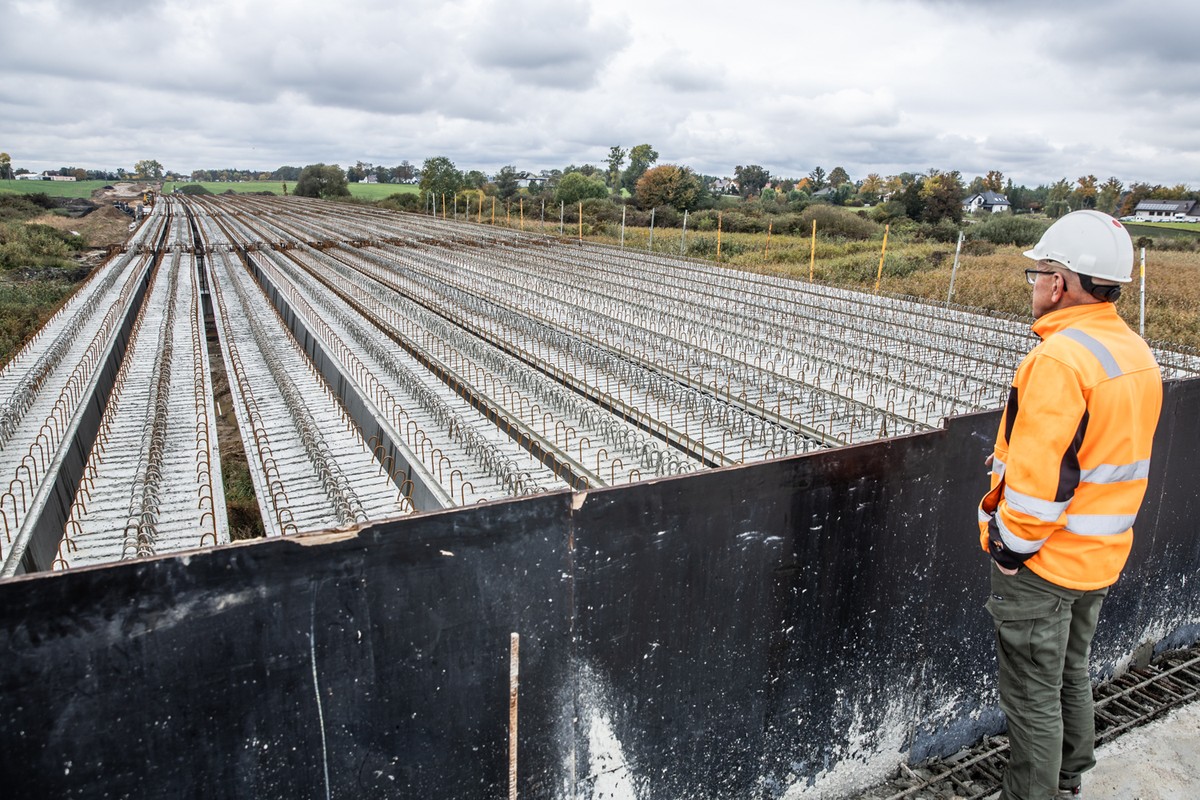The contractor has completed 65% of the physical work. Later this month, concreting of beams and reinforcement laid on all seven spans will be finished. In Żabno, works are underway on a new roundabout that will connect the bypass to the regional road. The first foundation layers are already in place and curbs are being installed. In the coming weeks, the contractor plans to continue works on sidewalk edges, retaining walls, and to begin waterproofing works on the constructed deck. Weather permitting, asphalt will be laid on the viaduct around the turn of the year. Completion of the works is planned for next year.
