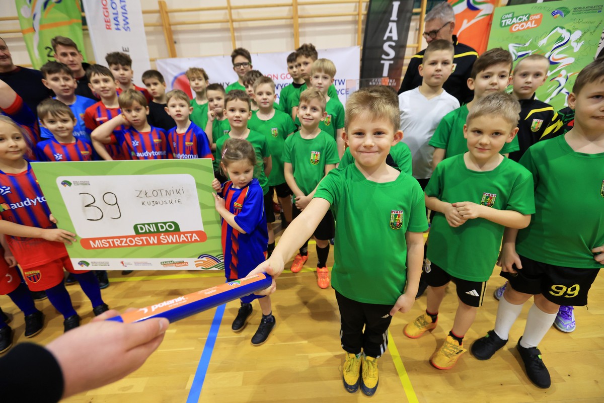 The championship gold medal has joined the relay baton that is traveling through all the counties of the region ahead of the World Indoor Athletics Championships. There are 38 days left until the most important sporting event in the world. Yesterday (February 9) we met during a football training session on the pitch in Złotniki Kujawskie (Inowrocław County); today (February 10) we will visit Lubicz near Toruń.