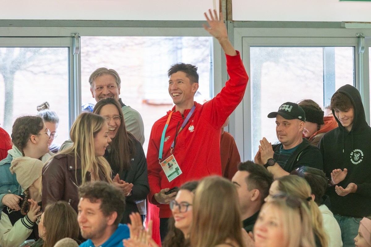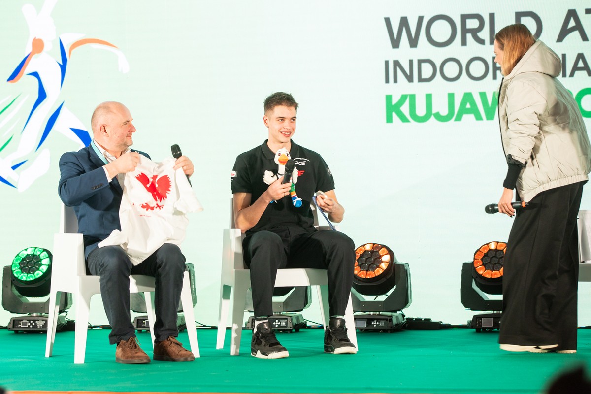 At the fan zone in the Rynek Nowomiejski, spectators could enjoy the same sporting emotions as those in the stands of the Kujawsko-Pomorska Arena in Toruń. Over three days, fans of athletics had the opportunity to meet stars of Polish and international athletics, take photos, and congratulate them on their performances. On March 22, Jakub Szymański, gold medalist in the 60-meter hurdles on March 21, greeted fans, with congratulations from Piotr Całbecki.